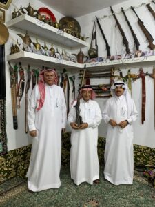 وبعد اكتمال وصول الضيوف تفضل الجميع بتناول وجبة اللطف التي يشتهر بها ابناء المنطقة الجنوبية والتي كانت عبارة عن الخبزة الجنوبية والعسل والسمن مع التمر والموز وتقديم القهوة العربية ومن ثم انتقل الضيوف الى متحف قبائل زهران والاطلاع على المقتنيات الاثرية القديمة والقطع الثمينة التي يحتويها المتحف حيث قام المشرف على المتحف الاستاذ أحمد بن عمر الزهراني بالشرح التفصيلي لجميع مايحتويه المتحف من صور واسلحة قديمة بنادق وسيوف وجنابي وعملات و قطع نادره وثمينه وقد اشاد الجميع بالمتحف ومايحتويه مثمنين كل الجهود التي بذلها المشرف على المتحف في اقتناء مثل هذه القطع النادرة متمنين له التوفيق.
