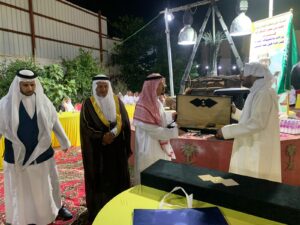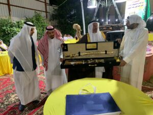 وبعدها تلقى الأستاذ أحمد عمرالزهراني (قروش) عدد من الهدايا تقديراً لجهوده ودوره الكبير الذي يقوم به في المتحف والتي قدمها الأستاذ سعدبن مقباس والأستاذ سعدبن شيبان والأستاذ حسين بن عطيه الشدوي والاسناد محمدبن عياد والاستاذ علي بن ملهوي والاستاذ علي بن سعور .
