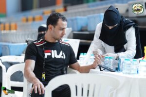 وشارك في تنظيم هذه الفعالية “كشافة رسائل السلام” بنادي النور بقيادة المفوض الكشفي علي العبندي الذي قال في لقاء معه : نحن اليوم في فعالية جميلة جدا وتواجدنا هنا هو لحفظ الأمن وتنظيم دخول الزوار واللاعبين للفعالية.