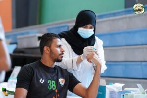 وشكر لاعب كرة اليد حسين الاحمر إدارة النادي والطاقم الطبي على إقامة مثل هذه الفعالية الصحية واجراء الفحوصات السريعة للإطمئنان على الصحة .