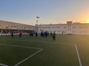 ، بالإضافة إلى الإهتمام بالجانب التوعوي والتثقيفي من خلال إقامة الورش التي تهدف إلى تثقيفهم بالمعلومات الرياضية لأكثر من مئة نزيل بالدار.