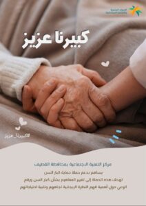 يشارك مركز التنمية الاجتماعية بمحافظة القطيف بالحملة التوعوية بحقوق كبار السن التي تُطلقها وزارة الموارد البشرية والتنمية الاجتماعية اليوم العاشر من شهر أغسطس الجاري وذلك بتعزيز ودعم الحملة من خلال المحتوى الإعلامي الذي أطلقته الوزارة والذي يحرص على تداوله ليصل إلى كل بيت تحت شعار ( كبيرنا عزيز ) .