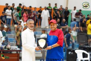 وسلم أ. علي مرار المشرف على كرة اليد بنادي الترجي الدرع إلى أ. عبدالله الصفواني عضو اللجنة المشرفة على كرة اليد بنادي النور.