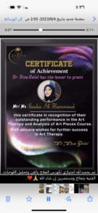 انهت ابنة القطيف الفنانة التشكيلية سعدية آل حمود كورس العلاج بالفن وتحليل اللوحات والذي قدمته “الدكتور دينا جلال” أحد المعالجين بالفن وأخصائية الصحة النفسية .