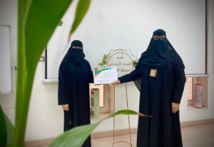 وفي نهاية اللقاء تم تكريم مجموعة الحارثي من قبل مساعدة مدير المكتب “سمية عبدالوهاب” بشهادة شكر وتقدير على جهودهم ومساهمتهم الفاعلة في توظيف مستفيدات الضمان الاجتماعي خلال هذا اللقاء.
