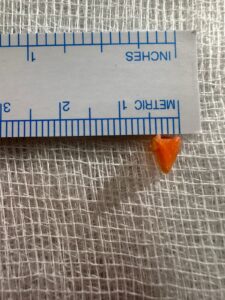 واتضح أن الجسم الغريب الذي تسبب في انسداد كامل للقصبة الهوائية اليسرى هو قطعة جزر غير مطبوخ بمقاس ٦*٤ ملم ، وبعد استقرار حالته الصحية في العناية المركزة للأطفال، غادر المستشفى وهو بصحة جيدة.