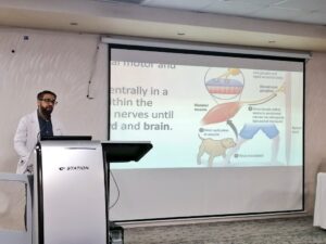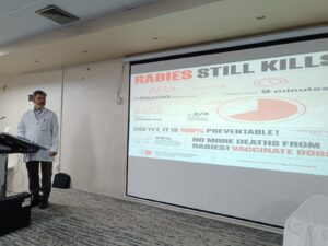 وتناول المحاضران الدكتور جاسم المقرن والدكتور مؤيد الشخل داء الكلب والذي يمكن الوقاية منه باللقاحات ومن عضات الكلاب ويحدث في أكثر من 150 دولة وإقليم، ويتسبب في وفاة عشرات الآلاف كل عام، خاصة في آسيا وأفريقيا، 40% منهم من الأطفال دون سن 15 عاماً.