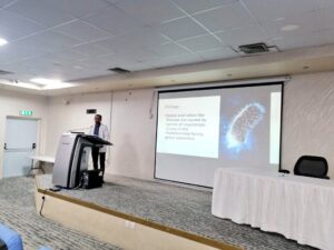 نظمت وحدة المراقبة الوبائية بالشراكة مع قسم الباطنية (أمراض معدية) بمستشفى القطيف المركزي أحد مكونات تجمع الشرقية الصحي، محاضرة بعنوان “السعار مرض مميت ممكن الوقاية منه” بقاعة المحاضرات الكبرى.