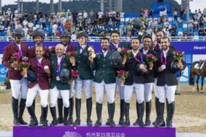 وتعد ذهبية اليوم، هي الميدالية الخامسة في تاريخ مشاركة أخضر قفز الحواجز في مسابقة الفرق، حيث يتسيد عرش الفروسية الاسيوية منذ أول مشاركة له في اسياد الدوحة 2006م وحتى النسخة الحالية 2022م بمجموع (4 ذهبيات، وفضية واحدة).