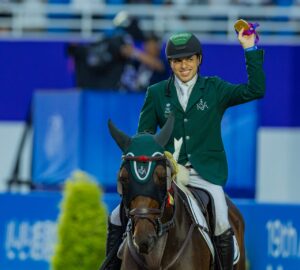 وقال سموه في منشور على منصة (X): “ألف مبروك لأبطالنا الفرسان فوزهم بذهبية الفروسية في قفز الحواجز، تتويج وتميز.. كل التوفيق لهم في منافسات الفردي”.