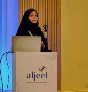 و ألقت كلمة اللجنة العلمية والتنظيمية الدكتورة مواهب الهويدي تناولت الهدف من الندوة والمتمثل في تبادل المعرفة والخبرات وكل ما يتعلق بالمستجدات في علم الأحياء الدقيقة والأمراض المعدية وبالخصوص مقاومة العدوى بالبكتيريا المقاومة للمضادات الحيوية، ودور التقنية الحديثة والذكاء الاصطناعي في مجال تشخيص الأمراض المعدية، بالإضافة إلى الاستخدام الآمن للمضادات الحيوية.