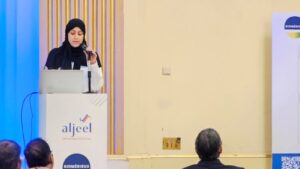 وقالت إن هذه الندوة تعد فرصة للتعلم والتواصل والانفتاح على آفاق جديدة بوجود كوكبة من المتخصصين وبالحضور المتميز من المهتمين بالمعرفة والعلم.