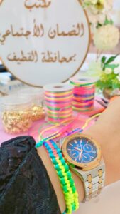 نفذ مكتب الضمان الاجتماعي بمحافظة القطيف متمثلاً بقسم التمكين يوم الاثنين الموافق ١ ربيع الثاني ١٤٤٥هـ ورشة عمل تدريبية بعنوان “صناعة الأساور والخلاخيل بالمكرميات” والتي قدمتها المدربة “ضحى أخضر”.