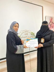 في الختام قدمت مساعدة المدير سمية عبدالوهاب شهادة شكر وتقدير إلى “أُخضر” على ما بذلته من جهود لاقت اعجاب جميع المشاركات.