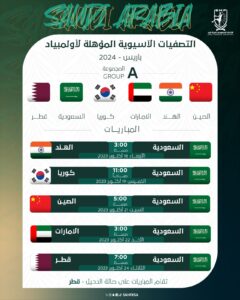 يدشن المنتخب السعودي الأول لكرة اليد يوم غداً الأربعاء 18 أكتوبر 2023م مشاركته في التصفيات الآسيوية المؤهلة لدورة الألعاب الأولمبية “باريس 2024” بمواجهة منتخب الهند، عند الساعة 3:00 مساءً، على مجمع صالات الاتحاد القطري لكرة اليد، حيث تقام التصفيات في الدوحة، وتستمر حتى 28 أكتوبر الجاري، بمشاركة 11 منتخب تم توزيعهم على مجموعتين، ويلعب الأخضر التصفيات ضمن المجموعة الأولى، التي تضم بجواره المستضيف منتخب قطر: إضافةً لمنتخبات: كوريا – الإمارات – الصين – الهند.