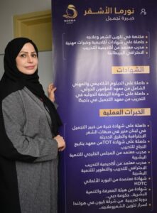 وعرفت “الأشقر” فيها على كل ما يخص العناية بالشعر وطرق معالجته، وتطبيق عملي لآلية فرد الشعر .
