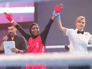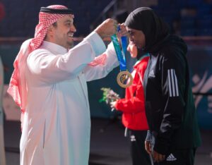 توّج صاحب السمو الأمير فهد بن جلوي بن مساعد، نائب رئيس اللجنة الأولمبية والبارالمبية السعودية، لاعبة المنتخب السعودي للملاكمة، كلثوم حنتول، بأول ميدالية ذهبية للسعودية في دورة الألعاب العالمية القتالية الرياض 2023، بعد فوزها على الإماراتية هيا العلي في منافسات وزن 50 كجم.