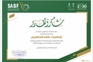 كرم رئيس الاتحاد السعودي للبوتشيا أ. محسن آل سماعيل الإعلامية عائشه ثامر العتيبي مديرة العلاقات العامة بصحيفة فرسان الرياضة على جهودها الإعلامية المتميزة في تغطية بطولة التحدي باليونان 2023 .