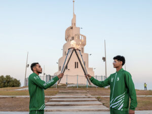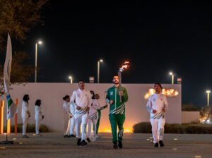 وفي أجواء احتفالية، بدأت جولة الشعلة في الواجهة البحرية لكورنيش الدمام، حيث حمل الشعلة محمد مصطفى ال نصفان لاعب الاسكواش والحائز على الميدالية الذهبية ببطولة الدنمارك للشباب عام 2022، والميدالية الذهبية لبطولة قطر الدولية للشباب التابعة للاتحاد الآسيوي في مارس 2023، كما حمل الشعلة بطل السباحة علي عيسى، والذي أحرز ميداليتين ذهبيتين في دورة الألعاب السعودية العام الماضي، وميدالية ذهبية وبرونزية في دورة الألعاب الخليجية في الكويت عام 2022، وصاحب الرقمين القياسيين السعوديين في سباقات 100 متر و200 متر ظهر.