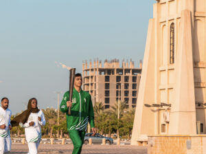 ثم توجهت المسيرة إلى بحيرة البط بكورنيش الخبر الشمالي، حيث حمل الشعلة عبدالعزيز الدريعي، لاعب الدراجات الهوائية والذي حقق 3 ميداليات ذهبية وفضيتين في البطولة العربية للمضمار عام 2022، و3 ميداليات ذهبية في البطولة العربية المجمعة 2021، واختتمت المسيرة جولتها في ساحة جوار، وحمل الشعلة في الممشى اللاعب الأولمبي السعودي على نور الخضراوي لاعب تنس الطاولة وصاحب المركز الأول في تصفيات غرب آسيا المؤهلة لأولمبياد طوكيو 2020، وصاحب المركز الأول في دورة الألعاب العربية في الجزائر عام 2023.