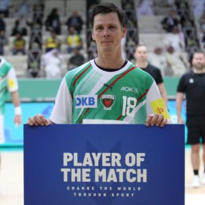 انتزع فريق برلين الألماني أولى بطاقات الوصول لنهائي بطولة العالم للأندية لكرة اليد “سوبر جلوب 2023”، بعد تفوقه على منافسه برشلونة الاسباني بفارق هدف واحد بواقع (35-34).