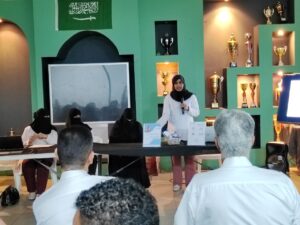 وتحدثت أخصائية التثقيف الصحي زينب الشيخ “لفرسان الرياضة” عن الفعالية قائلة : اليوم ١٤ نوفمبر اليوم العالمي للسكري واحببنا أن تكون إنطلاقتنا لتوعية المجتمع هنا بنادي النور ،وفعلنا عدد من الأركان التثقيفية عن السكري نشرح من خلالها خطورة المرض والعوامل التي تؤدي للإصابة بالمرض ، بالإضافة لعمل اختبار بسيط يحتوي على عدد من الأسئلة(الدائرة الزرقاء) يتم من خلال الإجابة عليها معرفة هل أنت معرض للإصابة بالسكري أو لا، وهذا الإختبار مهم ومعتمد ويحدد مدى الخطورة هل أنت في منطقة الخطر أما في منطقة الأمان .