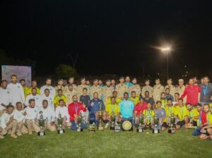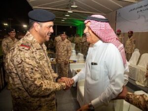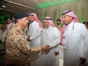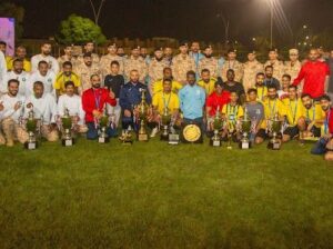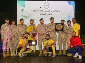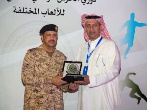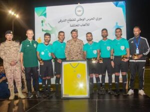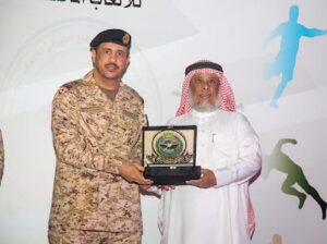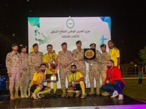 رعى سعادة مساعد وكيل الحرس الوطني للجهاز العسكري بالقطاع الشرقي اللواء الركن صالح بن عبدالكريم العريفي مساء يوم امس الثلاثاء 30/04/1445هـ الحفل الختامي لبطولة الحرس الوطني بالقطاع الشرقي للألعاب المختلفة والتي شارك فيها 18 فريقاً وكان عدد المشاركين721 لاعباً في 10 ألعاب مختلفة وهي كرة القدم وكرة الطائرة وتنس الطاولة والبلياردو والسباحة وشد الحبل ورفع الاثقال واختراق الضاحية والعاب القوى وسداسي الضباط وذلك بملعب النادي الرياضي بمدينة الملك فهد السكنية بالدمام وكان في استقبال سعادته لدى وصوله مقر الحفل سعادة نائب مساعد وكيل الحرس الوطني للجهاز العسكري بالقطاع الشرقي اللواء الركن محمد بن شويط العتيبي وقادة الالوية والوحدات ومدراء الإدارات العسكرية بالقطاع الشرقي بعدها عزف سلام اللواء وتوجه سعادته لمشاهدة المباراة النهائية في شد الحبل بين فريقي كتيبة مكافحة الشغب 53 وكتيبة مكافحة الشغب الخامسة وانتهت بفوز كتيبة 53 (0-2)ثم انتقل سعادته الى المنصة الرئيسية لمشاهدة الشوط الثاني لكرة القدم بين فريق كتيبة الشرطة العسكرية31 وفريق كتيبة مكافحة الشغب 51 وانتهت بفوز كتيبة 51 بنتيجة (0-1)وشاهد سعادته عدد من العروض لأكاديمية أبناء منسوبي الحرس الوطني في لعبتي التايكوندو والكاراتيه .