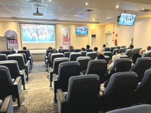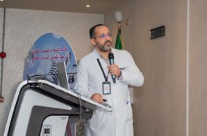 (الأشعة الخاصة بالحالات الطارئة) بمشاركة (١٢٠) متخصص ومتخصصة بالتزام مع الإحتفال باليوم العالمي للإشعة وذلك بقاعة المحاضرات بالمستشفى.