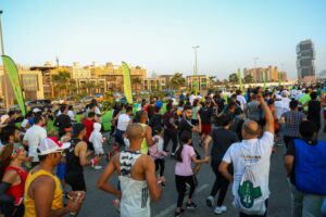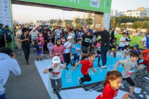 حيث اشترك الأطفال في سباق المتعة لمسافة ميل ونصف وباقي المشاركات لمسافة 5 كيلو في جو من الحماس والتحدي والمتعة ،