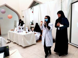 وشارك من الجهة التثقيفية في قسم شؤون الخدمات الصحية كلا من : منى عبدالله أبوشومي ، غفران زكي الفرج ، آفاق يونس العباسي و إيمان ابراهيم ال عبد رب النبي وذلك بالتعريف بالمضادات الحيوية والتي تستخدم لمكافحة العدوى البكتيرية وضرورة استخدامها بشكل آمن وصحيح حتى لا تؤدي إلى تطور المقاومة البكتيرية والتي تعد مشكلة صحية عالمية تعوق القدرة على معالجة العدوى بفعالية .