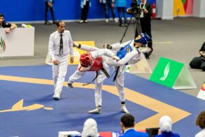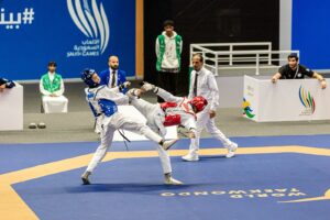 انطلقت أمس منافسات التايكوندو ضمن دورة الألعاب السعودية 2023 في نسختها الثانية بصالة جامعة الملك سعود بالرياض حيث بدأت دار الصراع بين (70) لاعباً في فئة الشباب يمثلون أندية المملكة بمختلف المناطق وأشرف عليها (28) حكماً،و جاءت نتائج اليوم الأول بتحقيق اللاعب عبدالرحمن الشهراني من فريق أبها ذهبية وزن 48 كجم ونال مساعد الخالدي من الصفا الميدالية الفضية واقتسما راكان آل سلمه من الشباب وعبدالله المشرف من الصفا البرونز، أما في منافسات وزن 55 كجم حقق الذهب يوسف جار من فريق الصقور ونال كاظم حمدي من الشباب الفضة وهاني الشهراني من أبها طارق زواوي من الوحدة البرونز ، وفي وزن 63 كجم ظفر محمد آل مداوي من أبها الذهب ونذير المشرف من السلام الفضة وزيد يسر من الهلال وعبدالرحمن السيد من الصفا البرونز ، وفي وزن 73 كجم خطف أحمد آل قرنوس من الفرع الذهب وسعود آل فهاد من أبها الفضة وياسر الأبنوي من الشباب وفراس العليو من السلام البرونز ، وفي الوزن المفتوح توشح الذهب أحمد بن قاسم من الشباب وماجد الماجد من الرياض الفضة ووافي الغامدي من العلا وأنس آل قرنوس البرونز .