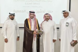 وأقيم بهذه المناسبة حفل بدأ بالسلام الملكي، ثم آيات من الذكر الحكيم، تخللته كلمة ألقاها رئيس الجمعية شكر فيها الخريف على حرصه على أن يكون في مقدمة الحضور للمشاركة في افتتاح هذا الصرح الخيري ودعمه ومتابعته المستمرة لكل ما من شأنه الرقي بالعمل الخيري في المحافظة، والعمل على تقديم كافة الإمكانيات المتاحة لتذليل أي عقبات وتحديات تواجه مسيرة العمل في الجمعية.