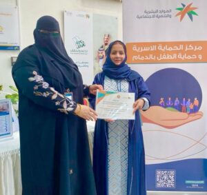حيث تم تفعيل ركن توعوي يهدف إلى رفع معدل الوعي لدى منسوبي ومراجعي المكتب، من خلال عرض بعض المشاكل الاسرية التي تتعرض لها المرأة. كما تتضمن الركن التعريف بخدمات مركز الحماية ودوره في حماية الأسرة من العنف، والتصدي له بوصفه قضية تتعلق بالصحة العامة وحقوق الإنسان، وتقديم الاستشارات للنواحي النفسية والاجتماعية وخدمات الدعم التي تتنوع بين المشورة والمساعدة القانونية والخطوط الساخنة.