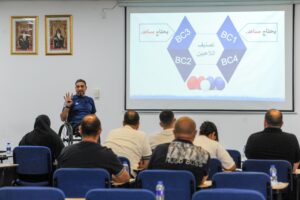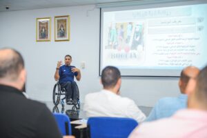 قدم من خلاله المحاضر محسن آل سماعيل ورشة عمل لمدة ثلاثة ايام حول (تعريف لعبة البوتشيا وتصنيفاتها وقوانينها)،كماتحدث عن الإعاقات ومن ضمنها : الإعاقة الحركية الرباعية والشلل الدماغي.