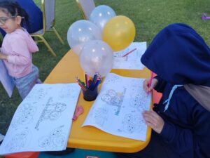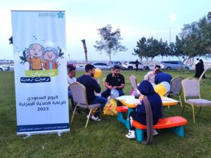 كما خصصت الفعالية ركن للأطفال يضم الرسم والتلوين ، وقام المتطوعون بالرسم على وجوه الأطفال مما أضاف جوء من البهجة والسرور .