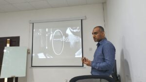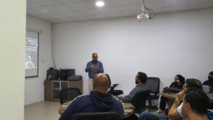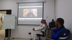شرح المدرب للحضور أنواع التعليق الصوتي ،كالوثائقي،القصصي ،الإخباري،الشعري،التعليمي ، مع إعطى الأمثلة لكل نواع والتطبيق العملي من قبل المتدربين .