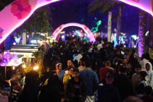 كأنها ليلة العيد، أو أيام العيد، هكذا وصف زائري مهرجان الزهور أجواءه الفرحة والسعيدة، بحضور قُدر بالآلاف، أهالي وزوار ، وجاليات عربية و أجنبية ملأت ساحة المنتزه التي تُقدر مساحته بـ ٤٥ ألف متر مربع.