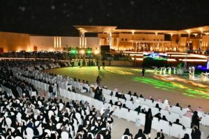 وانطلقت بعد ذلك مسيرة الطلاب المتفوقين والطالبات المتفوقات، في مشهد يبعث على الفخر والاعتزاز والإعجاب، تعبيرًا عن السرور والامتنان لإنجاز أبناء الوطن وبناته.