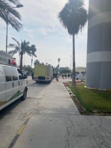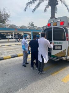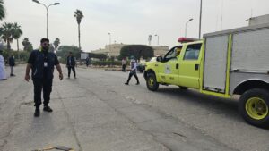 ليتم إطلاق الإنذار على الفور وتطبيق الإجراءات المتبعة في مثل هذه الحالات، وقد حضرت فرق الدفاع المدني للسيطرة على الحريق،فيما تم نقل المصابين عن طريق إسعاف المستشفى لقسم الطوارئ لتلقي العلاج اللازم.