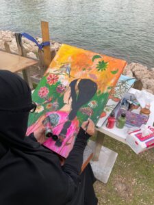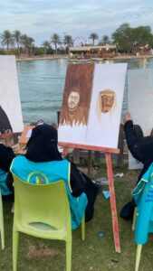 ومن المبادرات الجميلة هي الرسم الحر بمدينة جواثا السياحية حيث استقبلت أكثر من ٦٠ مشارك بمجال الرسم المباشر والخط العربي والمعرض الفني المتنوع والاركان الفنية المتنوعة منها ركن الكورشية والرسم على الوجهه وركن النحت والخشب وركن الريزن والرسم على الأكواب وركن الحناء للأطفال