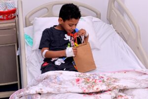 كذلك كانت من المبادرات الإنسانية زيارة المرضى وتقديم الهدايا لهم بهدف رسم الفرحة والبسمة على وجوههم والتي تعدت أكثر من ٥ مستشفيات بمعدل عدد ٦٥٠ هدية من تجهيز وتنسيق المتطوعات والمتطوعين اللذين شاركوا بهذا العمل الخيري