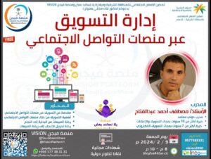 استمراراً لسلسلة الدورات التعاونية المشتركة بين تمكين الضمان الاجتماعي بالمنطقة الشرقية بالدمام وشريك النجاح منصة فيجن تم عقد برنامج مجاني بعنوان ” ادارة التسويق عبر منصات التواصل الاجتماعي ” مساء يوم الجمعة الموافق : 09 يناير 2024 تقديم المدربة : أ . مصطفى عبد الفتاح والاستاذة : منى رعد بحضور 340 مشارك من جميع انحاء ومناطق المملكة وخارجها ومن خلال البرنامج تم تعريف المشاركين على التسويق واهميته من خلال منصات التواصل كما تم عرض رحلة المبيعات من البداية وحتى النجاح وكيف يتحول الاعجاب الى زيادة في المبيعات وتأتي هذه المبادرة التعاونية بين تمكين ومنصة فيجن بهدف تحقيق التكامل بين مختلف القطاعات للوصول الى اعلى معايير الجودة في تمكين مستفيدي الضمان وتعزيز مهاراتهم وخبراتهم العلمية والعملية .