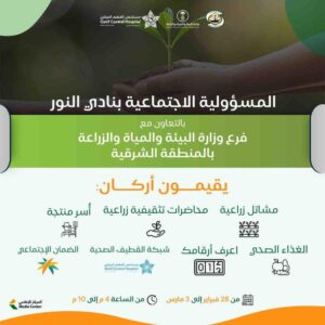 تنطلق يوم غدٍ الأربعاء ٢٨ فبراير “مهرجان الزراعة الموسمية ” ، والذي ينظمها قسم المسؤولية الاجتماعية بنادي النور بالتعاون مع فرع وزارة البيئة والمياه والزراعة بالمنطقة الشرقية وذلك بمقر نادي النور بسنابس.