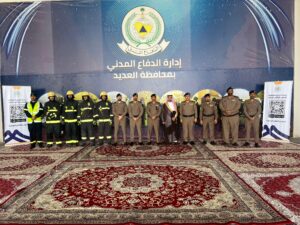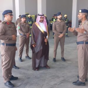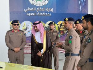 يدشن معرض اليوم العالمي للدفاع المدني والذي تقيمه ادارة الدفاع المدني بمقرها بالمحافظه تحت شعار (بالتقنيه نسعى لحمايتكم) حيث كان في استقبال المحافظ لدى وصوله مدير ادارة الدفاع المدني بمحافظة العديد العميد / محمد بن عبدالهادي ال معمر وقد تجول المحافظ في اركان المقر واطلع على التجهيزات واشاد بالجهود التي يقوم بها منسوبي الدفاع المدني ومنوهاً بدعم القياده الحكيمه لقطاع الدفاع المدني بما يجسد حرصها على سلامة الأرواح والممتلكات.