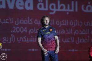 وعرض فلم مرئي عن نادي القادسية ، بعدها دخل اللاعب العالمي بافل ندفيد الى أرض الملعب، وقام بالتوقيع على الكرات قبل توزيعها على الجماهير ، والتقاط الصور التذكارية مع الجماهير.