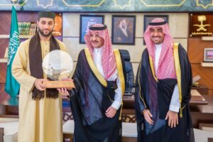 وكرم سموه خلال الاستقبال الفائزين بالمركز الأول لكل من الفروع الخمسة في مسابقة نادي القادسية لحفظ القرآن الكريم وهم: