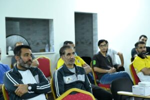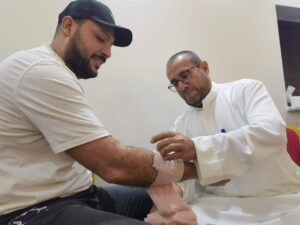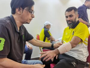 بحضور رئيس مجلس إدارة نادي المحيط المهندس عبدالله صالح الجارودي عقد مساء يوم الجمعة ٢٦ رمضان ١٤٤٥ هـ أقيمت بقاعة السيد علي حيدر بنادي المحيط بالجارودية بالتعاون مع مجموعة السلامة العربية ورشة عمل الاسعافات الاولية الرياضية. بقيادة المدرب الاستاذ احمد عباس العلوي والمعتمد من جمعية القلب الامريكية والمعهد الامريكي للسلامة ومن معهد الاستجابة الأولية. وأقيمت الورشة بحضور مجموعة من مدربيي واداريي الالعاب الرياضية المختلفة بنادي المحيط. وتركزت الورشة على بعض الامور الهامة في الاسعافات التي لها علاقة بحياة الانسان وعلى الخصوص الرياضي. وقد شارك بعض الحضور في التطبيق العملي ، وقدم المدرب معلومات مفيدة لكل من يتعامل مع اي حالة إسعافية متعلقة بإصابات الملاعب او الحوادث امثال الجروح والحروق والاغماء.