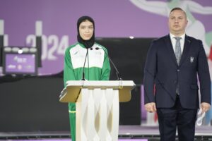 نيابة عن رئيس اللجنة الأولمبية والبارالمبية السعودية الأمير عبدالعزيز بن تركي الفيصل، افتتح مساعد سمو وزير الرياضة عبدالاله بن سعد الدلاك، مساء اليوم الجمعة ، بطولة العالم للمبارزة للناشئين والشباب ، في صالة الارينا بجامعة الملك سعود بمدينة الرياض، بحضور أحمد الصبان رئيس الاتحاد السعودي للمبارزة رئيس اللجنة العليا المنظمة للبطولة، والسيد عبد المنعم الحسيني نائب رئيس الاتحاد الدولي للمبارزة، والأمير عبدالله بن فهد بن عبدالله عضو مجلس إدارة اللجنة الأولمبية البارالمبية السعودية رئيس الاتحاد السعودي للفروسية.