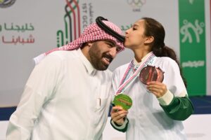 وحصل الثنائي، البتول المطيري وصبا الحارثي، على برونزية زوجي السيدات، عقب خسارتهما امام ثنائي المنتخب الاماراتي غدير الطاهري وفرح الحاج 0 – 2.
