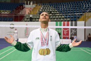 وجاءت ميداليات اخضر الريشة، بحصوله على ذهبية وفضية فردي الرجال، بفوز اللاعب يزن الصائغ في النهائي على زميله فهد المالكي بنتيجة 2 – 0 .